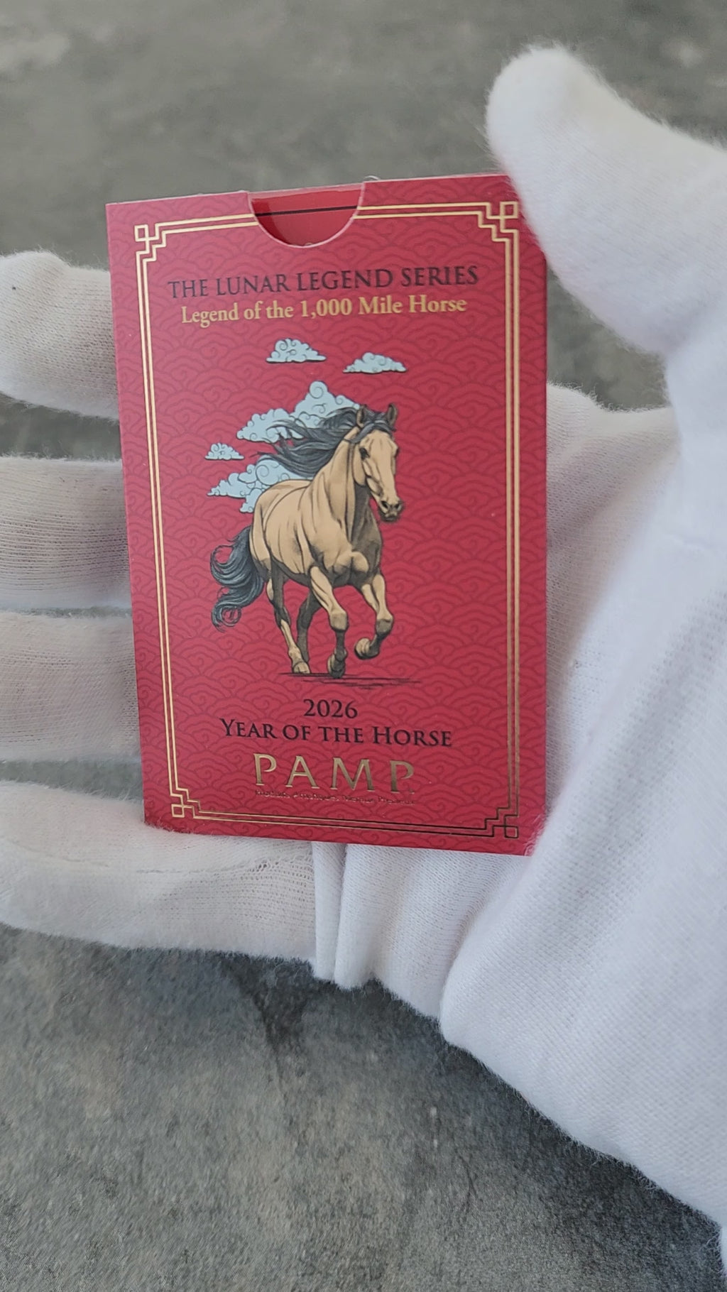 هذه السبائك الذهبية من PAMP، وزنها أونصة واحدة، تحمل شعار "عام الحصان"، ستكون إضافة رائعة لأي مجموعة قمرية، وهي هدية مثالية لأي شخص ولد قبل عام الحصان (1930، 1942، 1954، 1966، 1978، 1990، 2002، 2014). أضف هذه السبائك الذهبية من PAMP، وزنها أونصة واحدة، تحمل شعار "عام الحصان"، إلى سلة مشترياتك اليوم!